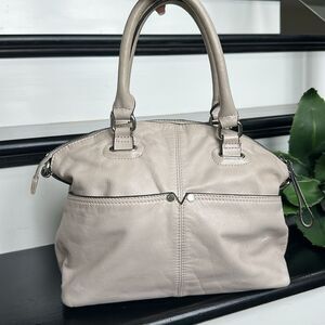 Tignanello Genuine Leather Satchel Tote Handbag Neutral Beige Soft Luxurious