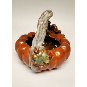 * Tii Collections Ceramic Pumpkin Leaf and Stem Handle Dark Autumn Colors Decor.