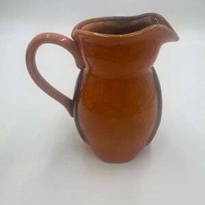 Tii Primitve Owl Harvest 8" Pitcher Pottery Orange Brown Glaze Food Safe