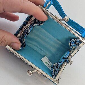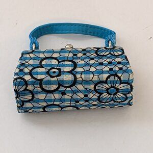 Adorable teeny tiny, mini bag, in great condition. Snap closure. Fun, mid century mod floral pattern. Measures approximately:3.5 long, 1.5 tall, 1.5” deep, 3.75 tall with handle