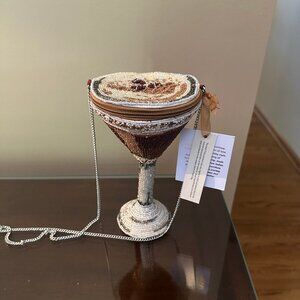 Viral Beaded Espresso Shaped Martini Handbag Purse NWT - Silver Chain
