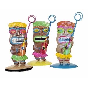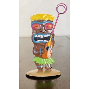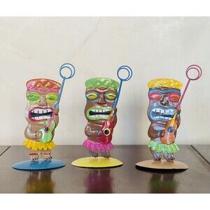 Tiki Mask Hawaiian Picture Holder Stand Tin Metal Hand Painted Set of 3