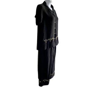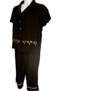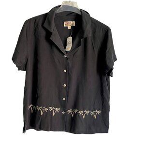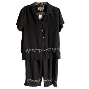 Tiki Originals Women's Embroidered Palm Tree 2 Piece Silk Set Size 12