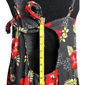 Tiki Palm Hawaiian Dress XL Red Tropical Open Tie Back Babydoll Asymmetrical Hem