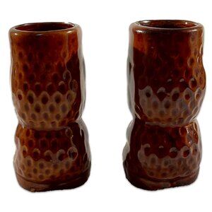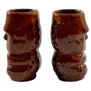 This set of 2 tiki shot glasses came from a restaurant that closed here in Atlanta. They have never been used. I don't know the name of the designer or manufacturer.