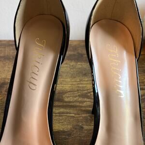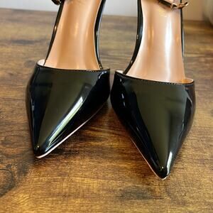 Tikicup Black Shiny Patent Pointed Toe 5” Strap Heels