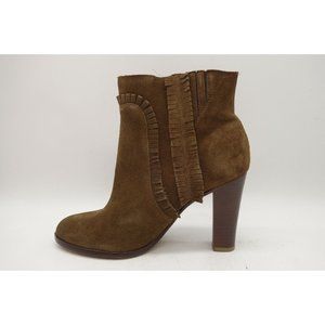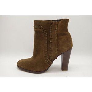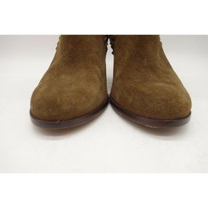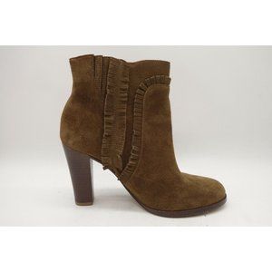Tila March Brown Suede Leather Slip On Block Heel Ankle Boots Women's 38 / 7