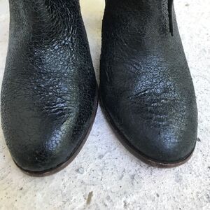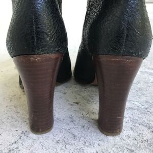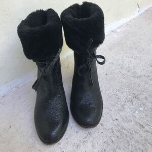 These are very nice boots that I will polish before mailing, one of the straps is dry, they show in the pictures the heel has a scarf that should polish out. Made in Brazil. Says it's a size 40 that really fits like a nine and would be very comfortable for an 8 1/2.Heel height is 3 1/2, fuzzy part around the ankle is still fuzzy