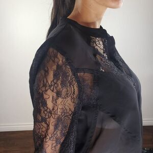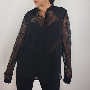 Tildon Black sheer blouse M