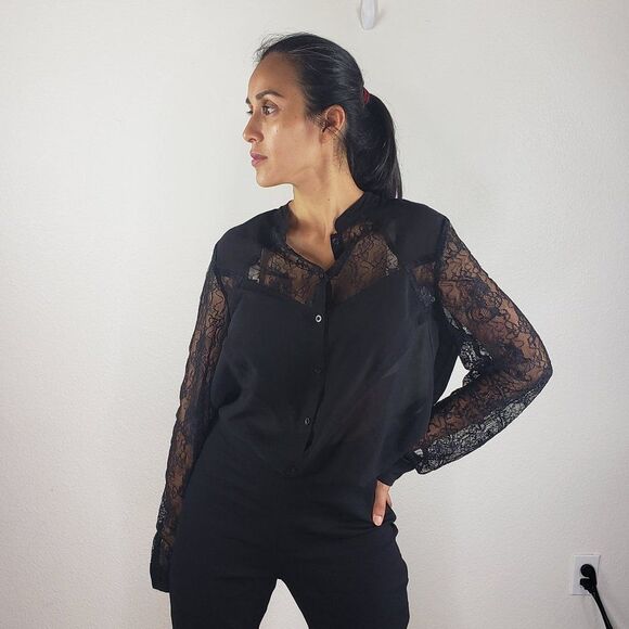 Tildon Black sheer blouse M