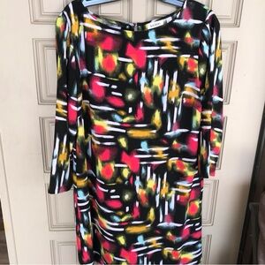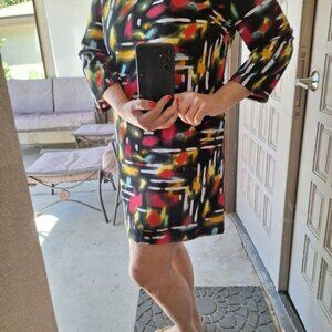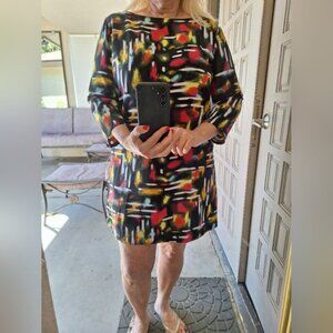 Tildon Dress Multi Color Deep Slit Back SzL Junior Long Sleeves Round Cute Dress