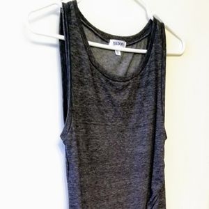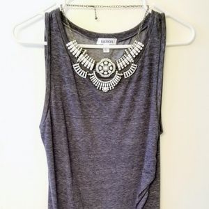 Elegant navy midi dress. Sleeveless design. Perfect for any occasion.
