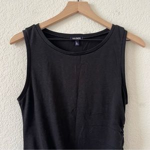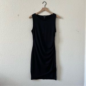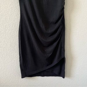 Tildon black mini dress from Nordstrom. Ruched detail on the left side, sleeveless, cross hem on bottom in front. Hits just above the knees. Excellent pre-owned condition, no rips/stains/tears.