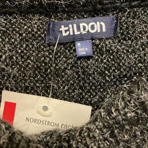 Tildon Charcoal Gray Shimmer Wrap Cowl neck sweater , size medium. New with tags! Great gift idea! Care & content tags in photos. Silver threads throughout .