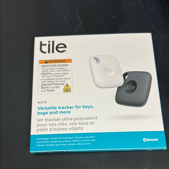 Tile Mate Bluetooth tracker in white and gray. Ideal for keeping track of your items.