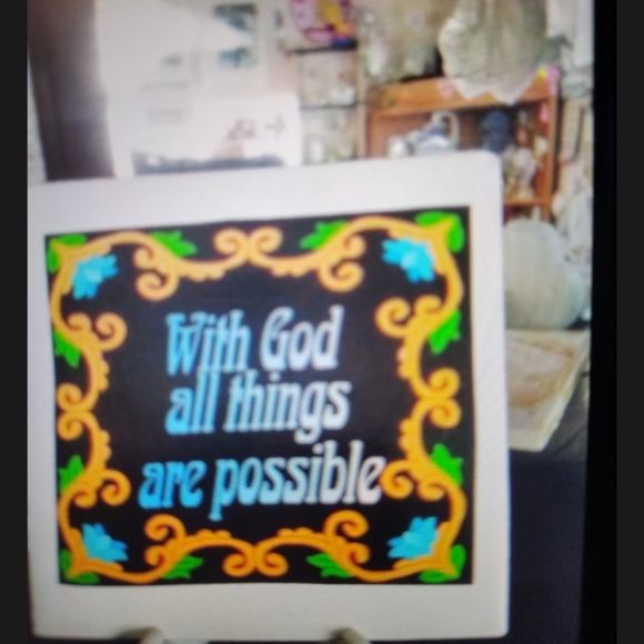 Tile Message "With God all Thing are Posible" with wood stand great message of faith