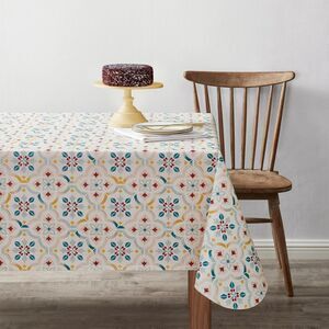 Floral Tile Print PEVA Tablecloth. Measurement: 60" x 84" - rectangle.