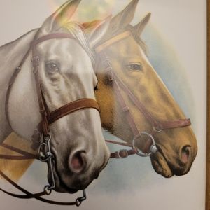 Beautiful tile of two 🐎 horses. Wood frame. Has a little stain on back because if it's age. No cracks, no chips on tile. Hang anywhere in your home 🏡