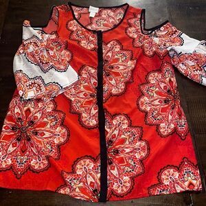 Tiled Spice Cold-Shoulder Top Chicos Size 1