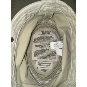 Stay cool and protected outdoors with this authentic Tilley Endurables Airflo Hat, size 7 1/2. Known for its lightweight durability and UPF 50+ sun protection, this khaki hat is perfect for hiking, fishing, travel, and everyday wear. Features include a wide brim for shade, mesh ventilation to keep cool, and classic Tilley craftsmanship.