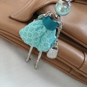 Tilly is the most adorable movable purse fob, she has on a teal blue dress with the big bow in front she's carrying her fashionable handbag and all of her limbs move! She can be used either as a purse fob, or as a keychain it is an adorable gift! She's delicate, tiny, and a fashionista!