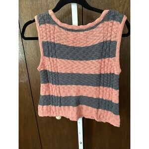 Tilly’s FULL TILT Cable Knit Cropped Womens Striped Gray/Peach Sweater Vest, SzL