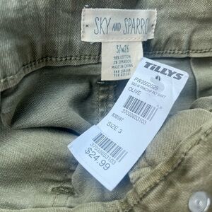 Tilly’s Sky and Sparrow denim Olive shorts sze 23 women’s NWT