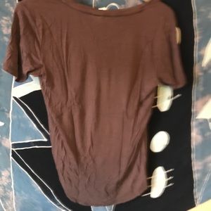 I tied this purple shirt because i think it looks extremely cute that way with a bralette, easily untieable. super soft and comfortable.