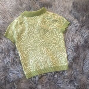 Tilly’s Full Tilt Sweater Polo, girls xs, green 70’s swirly pattern with collar. In EUC, see pica for measurements!