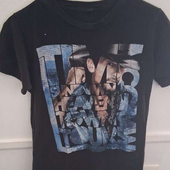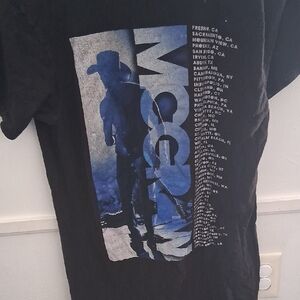 Stylish black t-shirt featuring a bold blue graphic design. Perfect for casual wear.