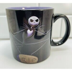 Tim Burton Jack Skellington Mug Disney 20 oz Black Heat Reveals Graveyard Scene