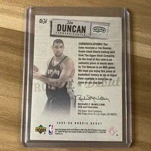 Tim Duncan Rookie Card Game worn