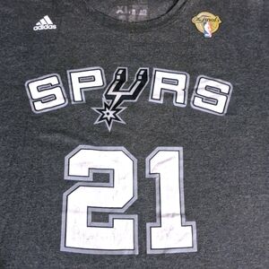 Cotton/polyester material blend. Shirt has some wear but still has vintage value. Has rare Finals patch.