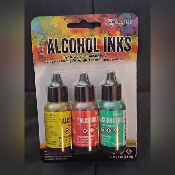 Note: Ranger does not recommend using Tim Holtz® Alcohol Inks, Metallic Mixatives, Snow Cap Mixative or Alcohol Ink Blending Solution in spray bottles as these contents contain alcohol and should not be airborne.