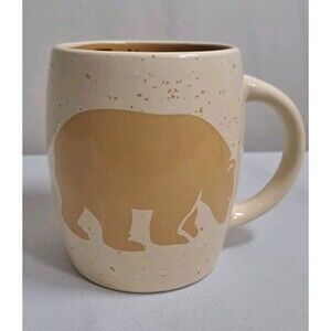 Tim Hortons 2016 Limited Edition ceramic mug/coffee cup #016. Tan speckled exterior with the silhouette of a bear. Caramel color interior.