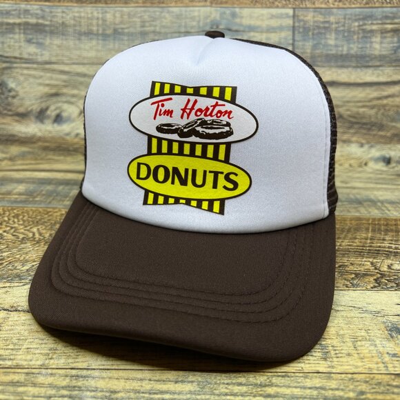 Tim Hortons Donuts Mens Trucker Hat Brown Snapback Canadian Restaurant Retro Cap