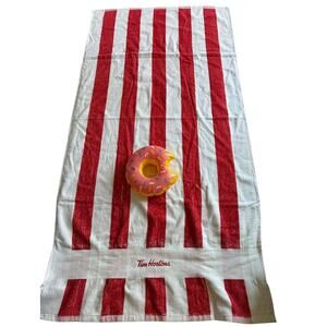 Tim Hortons Large Beach Pool Bath Towel With Inflatable Drink Holder Donut READ
