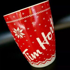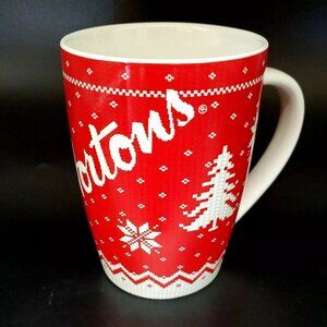 Tim Horton's Snowflake Sweater Mug 2015 Red & White Limited Edition Coffee Cup.
