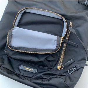 Adjustable hand and shoulder straps help you get a comfortable fit. Neoprene internal organizational pockets offer helpful stretch. Leather vista loop and zipper pulls.