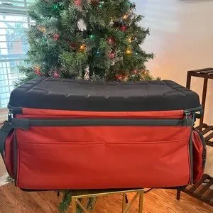 The cooler features multiple zippers and pockets for ample storage space and utility.