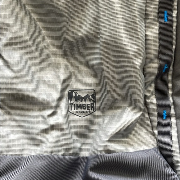 Stylish Timber Ridge jacket in gray with blue accents. Perfect for outdoor adventures.
