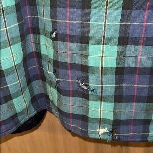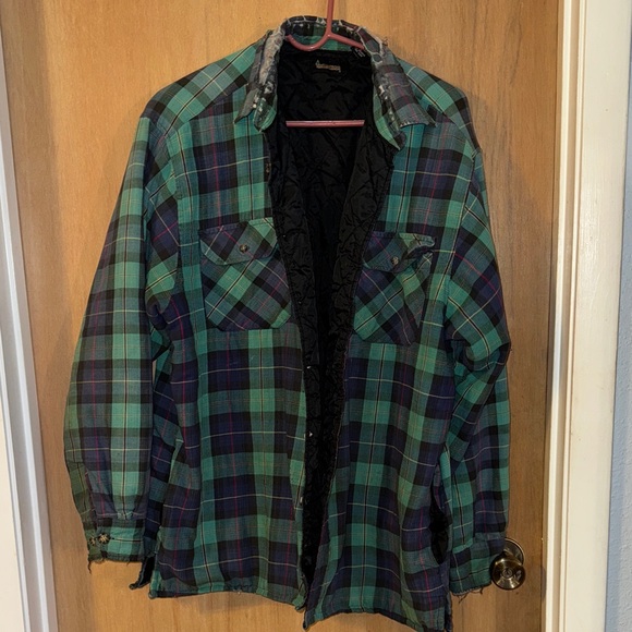 Stay stylish and warm with this plaid men's jacket. Featuring a classic design, it's perfect for any casual outing. This is very well-loved but would be for hard labor, a costume or even a scarecrow!