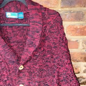 Timber Trail Red Black Knit Button Down Heavyweight Cardigan Sweater Women's Size Large