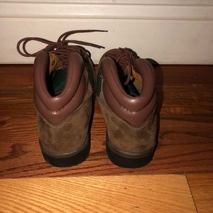 Brown and Green Timberland Boots