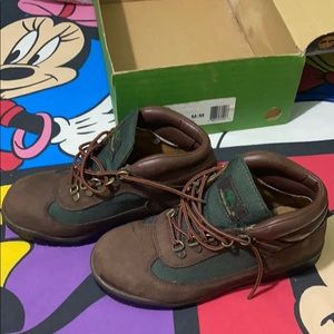 Brown and Olive Junior’s Timberland boots in good conditions. One of the laces are a bit worn however, still in good condition.
