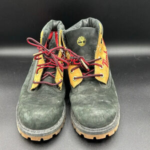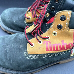 Timberland 6 Inch Premium Waterproof Boot Junior 'Patch Logo - Black' size 2 minor wear. One shoestring needs replaced