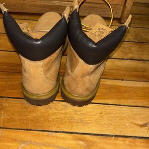 Timberland size 5.5 feels equivalent to women’s 7 but fits tight more of 6. Tight fitting slight stain on right shoe no box still good condition! No shoe lace on left foot replaceable will be packaged with it!
