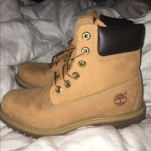 I got these Timberlands for Christmas last year and have only worn them out once. They are too big, and I waited too long to return them, so they have been sitting in their box in my closet. They are in really good condition and look great! A little bit creased on the top but it's not very noticeable! Willing to negotiate!