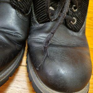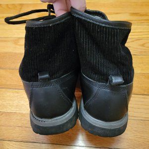 Timberland 8M Black Leather Lace Up Ankle Boots Waterproof Foldover Corduroy