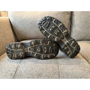 Crafted for the outdoor enthusiast, the Timberland ACT Brown Leather Hiking Boots are a blend of durability and comfort. With a robust leather upper and a waterproof design, these boots are built to tackle tough terrain while keeping your feet dry. The solid brown color offers a versatile look that pairs well with any outdoor attire. Men's size 11M, these boots feature a secure lace-up closure and a round toe shape that accommodates a range of outdoor activities. The leather outsole provides a sturdy grip on various surfaces, ensuring stability on the trails. Whether you're on a hike or facing a challenging outdoor task, these Timberland combat-style boots are designed to support and protect your feet.